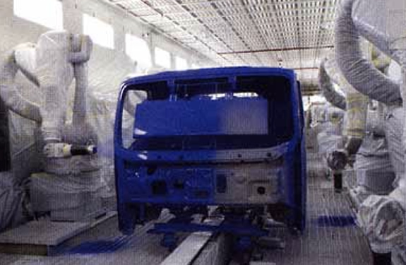 In the painting process, the application of paint and high-temperature drying are repeated, taking about 8 hours to complete the painting of one car.